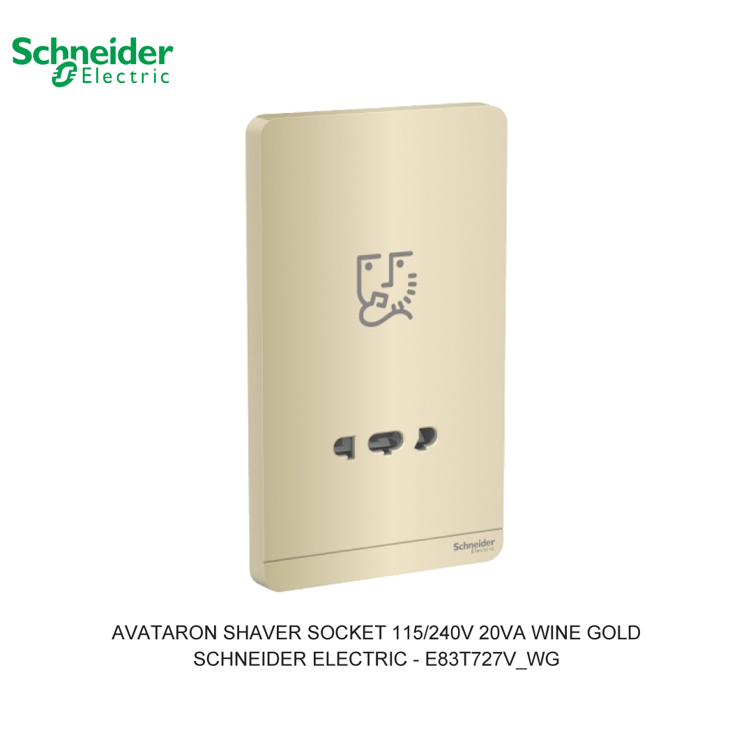 Untuk unduh datasheet produk, silakan klik disini! ListrikKita.com menjual beberapa brand yaitu, Schneider Electric, ABB, Siemens, Fuji Electric, LS Electric, Nidec, Socomec, L&T, Ducati Energia, Chint, Hager, Nader, Axle, Lifasa, Himel, APC, Hensel, Philips, GE Current, Simon, Hannochs, Nusa, Gesits, U-Winfly, Hioki, TAC, Imou, Airquality, Legrand, Mennekes, Epcos, Safe-D-Lock, Leroy Somer, Allen-Bradley, Sunfree, Secure, Telergon, Circutor, OPT, CIC, PM, Supreme, Kabelindo, Kabelmetal Indonesia, Alpha, Selis, Telemecanique, Trafindo, Esitas, BOSS, B&D Transformer, Asco, Secure, Howig, Onesto, Veloce dan masih banyak lagi. Anda dapat berbelanja dengan aman di ListrikKita.com karena semua barang yang kami jual dijamin 100% asli, bergaransi resmi dan dapat disertai dengan surat keaslian barang. Untuk dapatkan harga terbaik dan informasi lebih lanjut bisa menghubungi tim sales atau marketing kami silakan klik disini. Selamat berbelanja. Schneider Electric AvatarOn E83T727V_WG in color wine gold is a universal vertical shaver socket. And its input voltage is 240V and the output voltage is 115V/240V. Its rated operating power is 20VA. It is 86 mm in width, 147 mm in height and 50 mm in depth. Surface mounting is the mounting type of this shaver socket. The device connection terminal is pillar terminal. It is resistant enough being made of PC (polycarbonate) and brass material. The IP rating of this device is IP21. Being UV resistant, it doesn’t degrade after long-term exposure to ultraviolet light. Besides, standard of IEC 61558-2-5 is well met. Documents