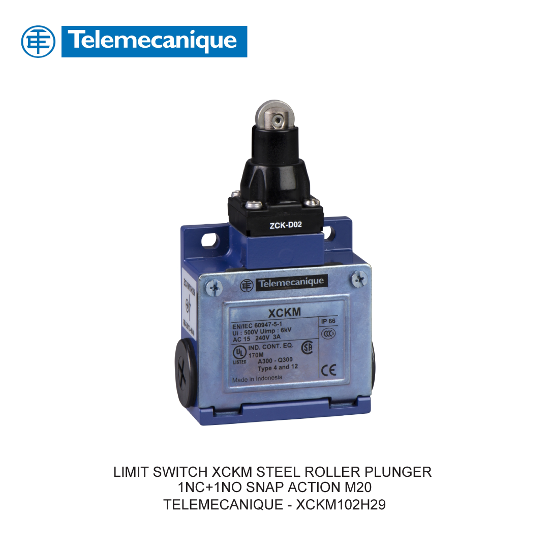 | Nama Produk | LIMIT SWITCH STANDARD XCPR THERMOPLASTIC PLASTIC ROLLER LEVER PLUNG VER 1NC+1NO SNAP M20 |