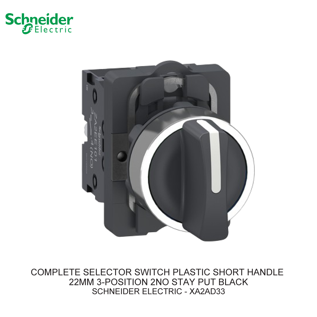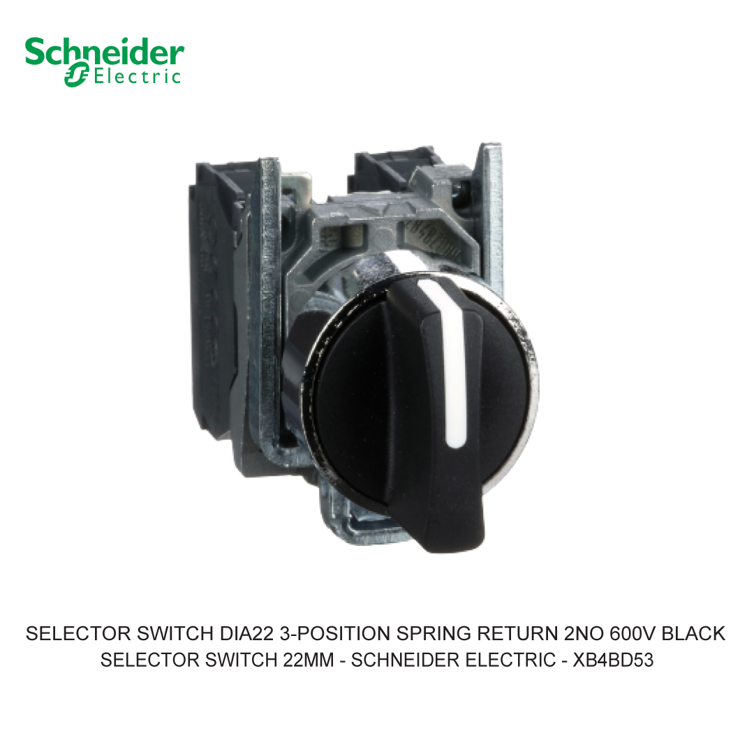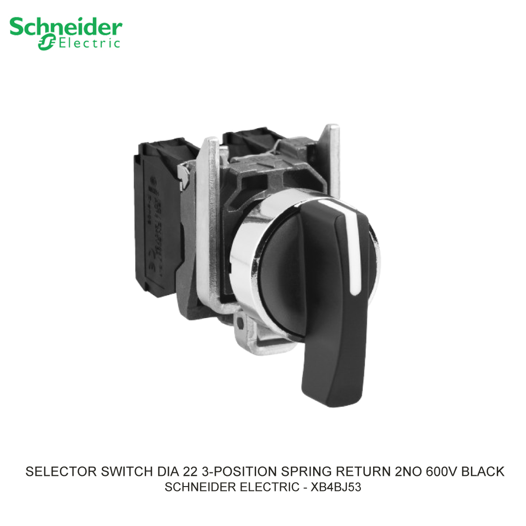 Selector Switch Schneider Electric Selector Switch atau saklar pemilh merupakan perangkat mekanis yang bisa mengontrol arus listrik atau aliran daya dalam satu atau beberapa sirkuit dengan membuka atau menutup kontak listrik. Fungsinya adalah untuk mengendalikan perangkat dan beralih di antara minimal dua atau lebih sirkuit. Perangkat ini bisa digunakan untuk mengendalikan output suatu perangkat. Anda dapat berbelanja dengan aman di ListrikKita.com karena semua barang yang kami jual dijamin 100% asli, bergaransi resmi, dan dapat disertai dengan surat keaslian barang. Untuk informasi lebih lanjut atau ingin melakukan pembelian dalam jumlah besar bisa menghubungi tim sales atau marketing kami, dengan klik di sini. Selamat berbelanja! This Harmony XB5, modular black selector switch has 3 positions, operates with a spring-return-to-center mechanism and uses screw clamp terminals. This selector switch provides a versatile interface for controlling your machines. It is easily installed into standard 22mm diameter cut-outs and connected to your control circuits with simple screw-clamp connections. It provides an effective manner to give your machine multiple different inputs. It is impact resistant, dust resistant, water resistant and vibration resistant thanks to its IP69, making it ideal for operation in harsh environments. Its plastic bezel makes it ideal for applications requiring good resistance to chemical agents and/or double electrical insulation. Specification