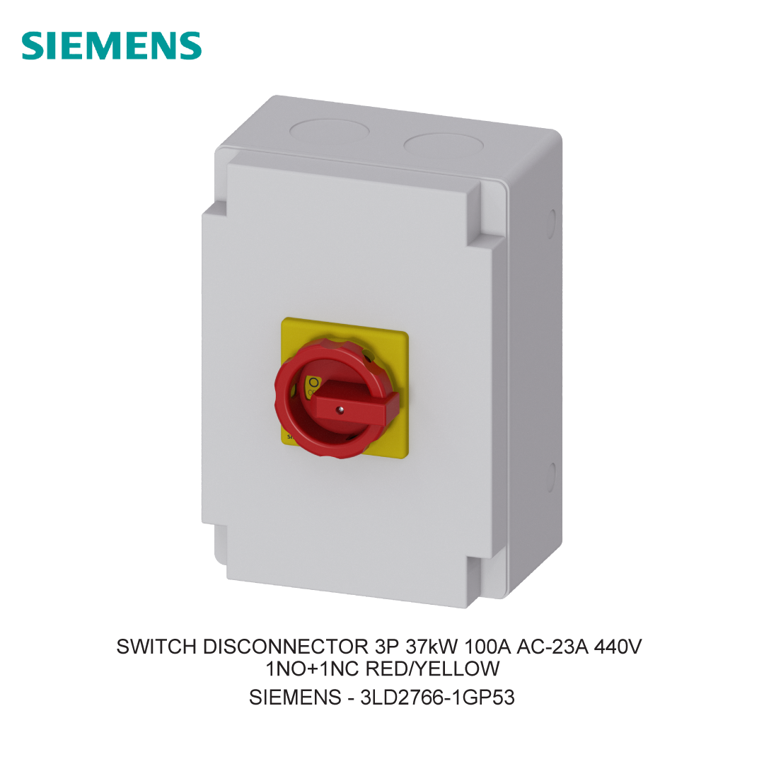 Download the 3LD2766-1GP53 SWITCH DISCONNECTOR 3P 37kW 100A AC-23A 440V 1NO+1NC RED/YELLOW datasheet, by clicking here! Karakteristik Teknis: