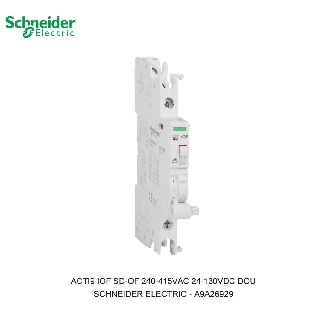 Untuk unduh datasheet produk A9A26929 Acti 9 Auxiliary contact iOF/SD+OF 2OC AC/DC, silakan klik di sini! Auxiliary Contact Schneider Electric Auxiliary Contact atau OC Contact merupakan kontak bantu, berupa saklar kecil yang terpasang pada perangkat kontrol listrik seperti pemutus arus, relai, dan juga kontaktor. Alat ini juga menjadi kontak tambahan yang membentuk bagian dari sirkuit untuk meningkatkan jumlah listrik yang bisa mengalir melalui sistem. Fungsi Auxiliary Contact: