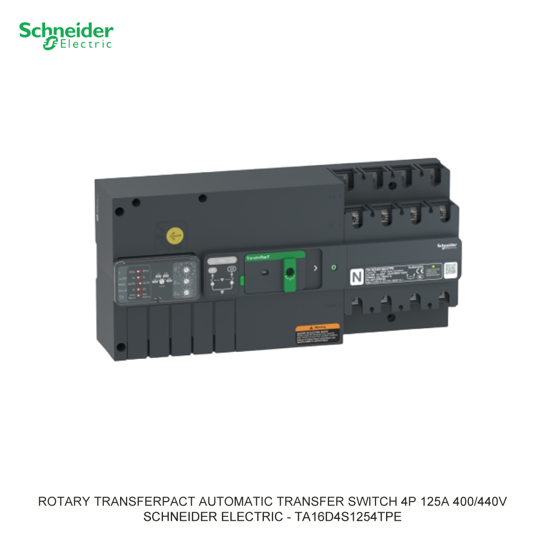 TransferPacT adalah sakelar transfer generasi baru dari Schneider Electric yang memberikan keandalan terbaik di kelasnya dengan kinerja transfer yang sangat cepat. Sakelar yang terhubung secara native ini dapat dipantau 24/7 dan berkat desain modularnya, sakelar ini mudah ditingkatkan. TransferPacT Sakelar transfer turunan, berjenis pemutus sakelar (kelas PC), dikontrol secara manual (MTSE), sesuai dengan standar IEC 60947-6-1.
